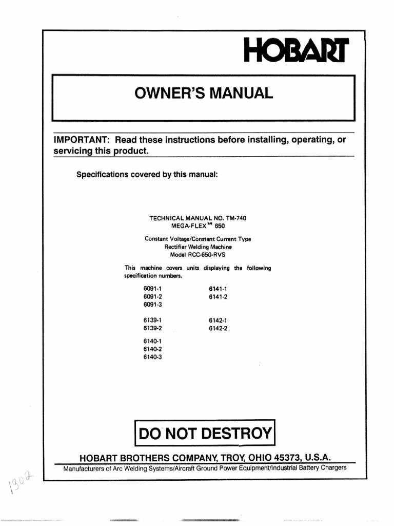 Manuals & Parts | HobartWelders Printed copies of manuals are $15 each, shipping and handling included. To order, contact the Literature Department - 920-735-4356 or 1-800-426-4553. Where To Buy