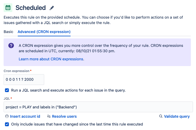 Organize your rules with labels | Cloud automation Cloud | Atlassian ... On the Automation page, click Add label. Enter a name for your label, and choose a color. Once a label has been added, drag and drop a rule on the label to apply it. Remove labels When viewing rule labels, an x appears alongside each label. Click the x to remove the label. Filtering rules Solved: Jira field label values removal - Atlassian Community labels are system-wide not per project. To completely remove a label you must find and remove every occurrence from all issues. You can use bulk edit to find and remove all occurrences. Bindu Shrivastav Aug 23, 2021 Thank you Jack. Like Bindu Shrivastav Aug 23, 2021 I removed one value of 'labels' field from all the issues. Solved: Delete Label in Jira - Atlassian Community You can make it so the labels no longer show up when browsing project labels: To completely delete a label from a JIRA application project, the label must be removed from all the issues in that project. Once it is removed from all issues, it will no longer be seen when browsing a project's labels. How do I find which labels are in my projects? Clean up list of labels in Jira Software - Atlassian Community The ticket stated "To delete a label to be completely removed from a project in JIRA, the label must be removed from all the issues in that project. Once it is removed from all issues, it will no longer be suggested in autocomplete or when browsing a project's labels." Cheers! Vanessa Becker Oct 08, 2021