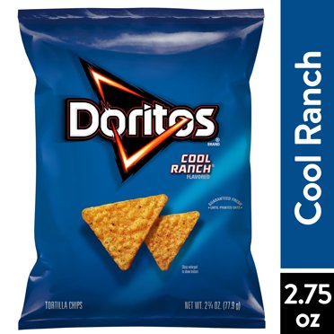 Doritos Cool Ranch Flavored Tortilla Chips, 3.125 oz Bag - Walmart.com 77.9 ¢/oz. Doritos Tortilla Chips Flamin' Hot Cool Ranch Flavored 2 3/4 Oz. Pickup Delivery. $3.48. 37.6 ¢/oz. Doritos Spicy Sweet Chili Flavored Tortilla Chips, 9.25 oz Bag. 106. Pickup Delivery 3+ day shipping. Best seller.