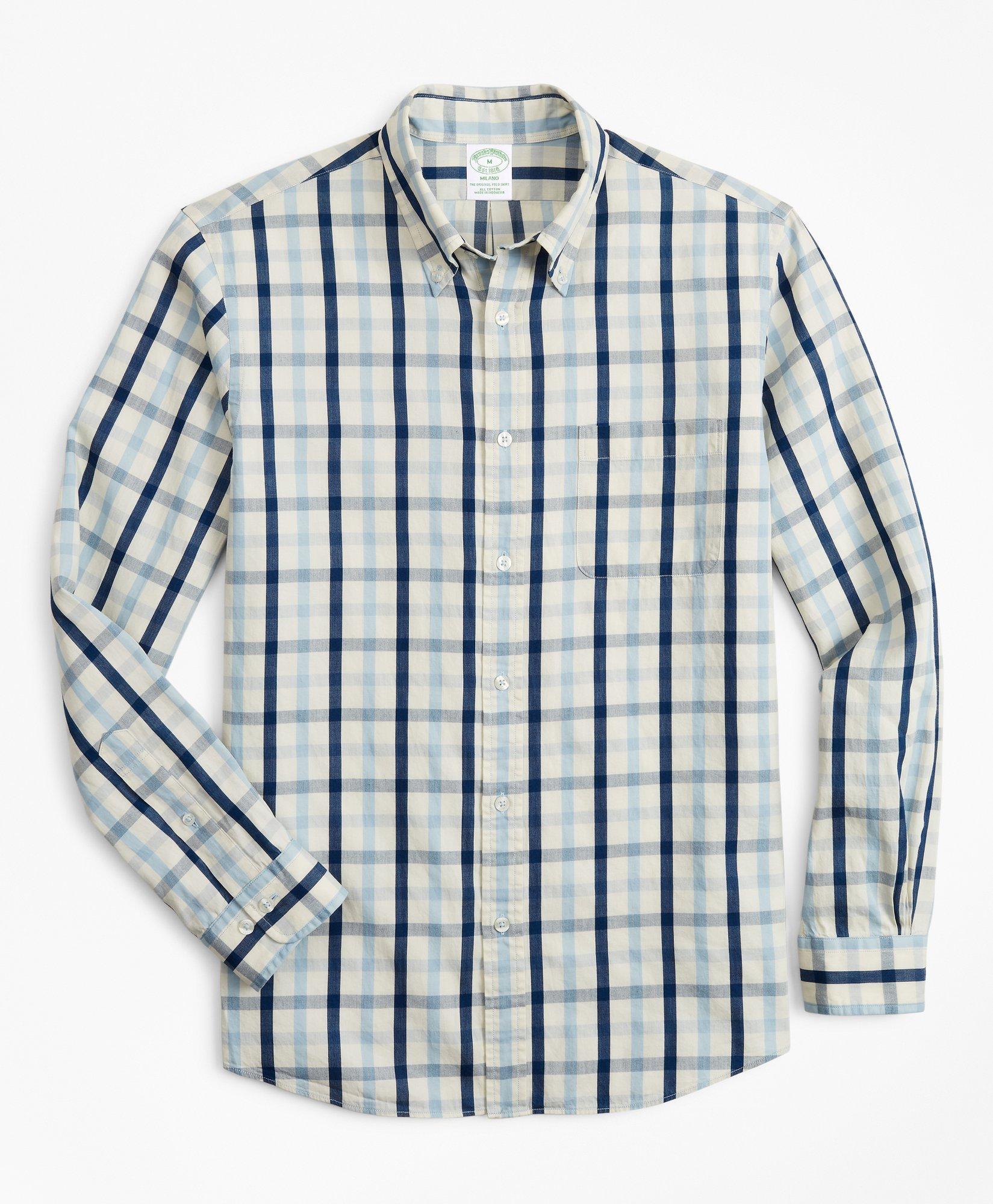 Men's Shirts: Short & Long Sleeve Button-Downs | Brooks Brothers Regent Regular-Fit American-Made Oxford Cloth Button-Down Stripe Dress Shirt. $198.00. Made In America. Stretch Regent Regular-Fit Dress Shirt, Non-Iron Poplin Button Down Collar Stripe. $118.00. Now 25% Off 3 (Or More) Shirts. Stretch Regent Regular-Fit Dress Shirt, Non-Iron Dobby Ainsley Collar Diamond. $128.00.