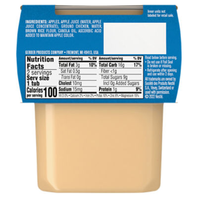 Gerber 1st Foods Apple Baby Meal - 4oz : Target Gerber fruit puree uses natural apples that meet high quality standards to start a love of fruit This baby puree is made with 1/3 apple and has 45% daily value of vitamin C in each tub Non-GMO Gerber baby food contains no artificial flavors or colors and no added sweetener or starch