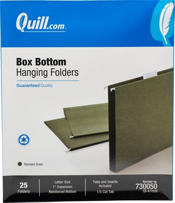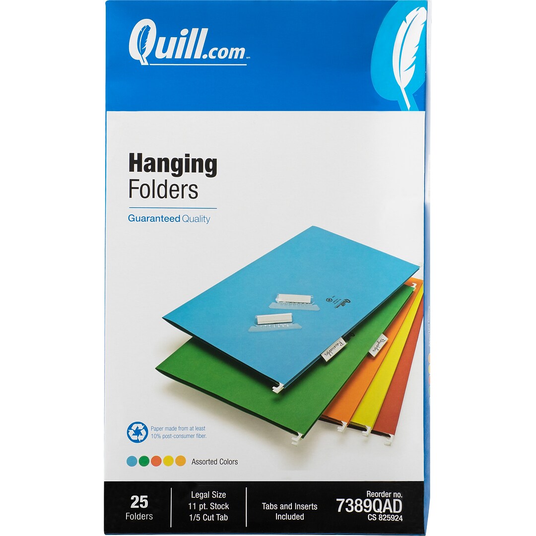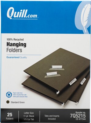 › hanging-file-folders-25-box › cbsQuill Brand® 100% Recycled Hanging File Folders; 1/5-Cut ... 25 folders per box Contains 100% recycled content, 100% post-consumer material Quill Brand Standard Hanging File Folders Make Filing Easier. Organize your company file cabinet with efficient Quill Brand hanging file folders. These 1/5-cut file folders are made from 100 percent recycled materials.