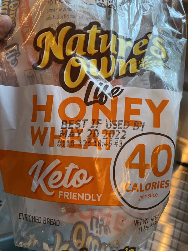 Natures Own Life Honey Wheat 40 Calories per Slice Keto Friendly ... You'll get one 16 oz loaf of Nature's Own Life Honey Wheat Bread · Keto friendly loaf of bread with only 40 calories per slice provides a good source of fiber ...