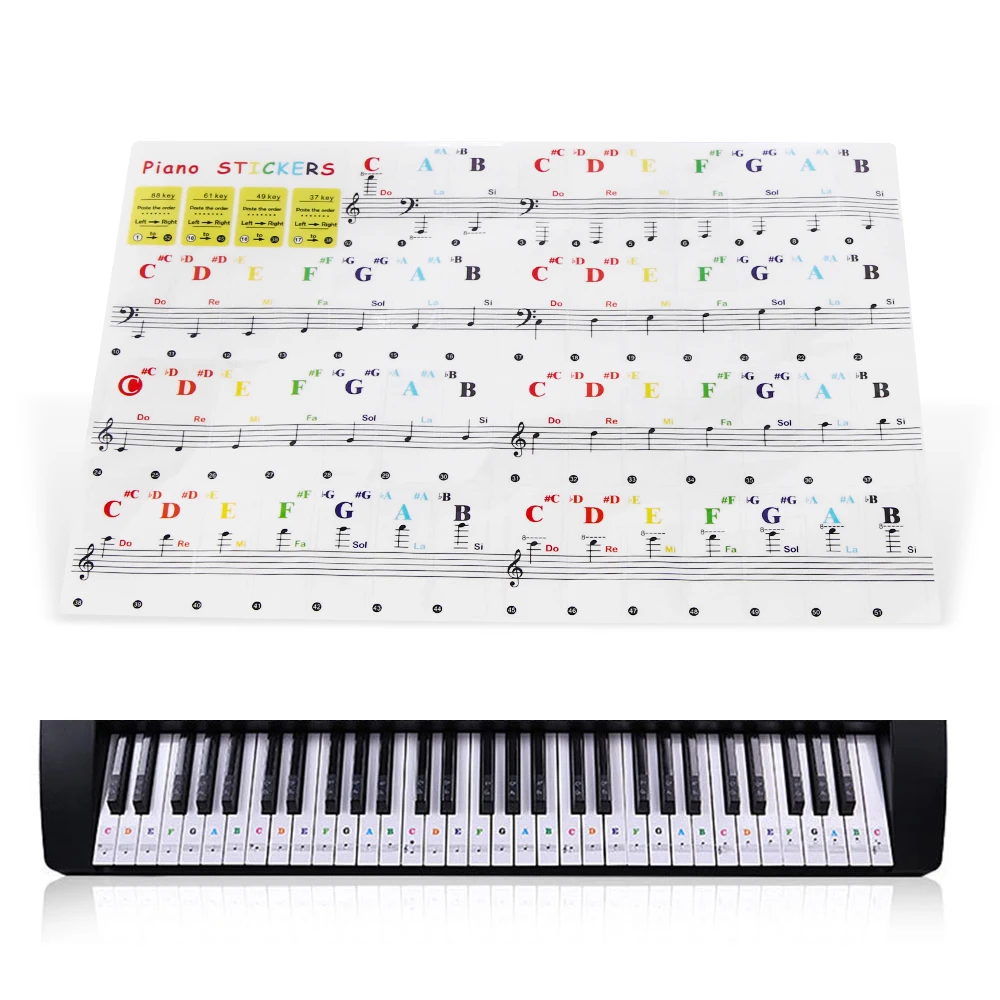 1 Buah Stiker Keyboard Piano Transparan 88/61/54/49 Kunci Keyboard Elektronik Kunci Piano Stave Note Stiker untuk Kunci Musik Putih