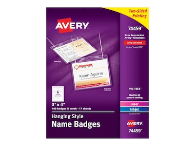 Avery® 5392 3" x 4" White Badge Holder Laser / Inkjet Insert Refills ... Avery 5392 Details Efficiently create high-quality, professional custom name badges for meetings, conferences, reunions, and parties, with these Avery® 5392 3" x 4" white name badge laser/inkjet insert refills.