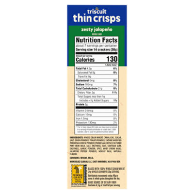 › Triscuit-Crisps-Original-CrackersTriscuit Thin Crisps Original Whole Grain Wheat Crackers, 7.1 oz Oct 1, 2022 · Product Description. Triscuit Thin Crisps Original Whole Grain Wheat Crackers pack the flavor of the original in a thin, crispy cracker. These 100% whole grain wheat crackers are flavored with sea salt and baked into thin triangle shapes with a woven texture for snacking appeal.