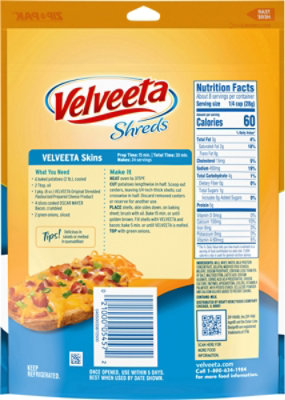 Velveeta Nutrition Facts. Calories, carbs, fat, sodium & more ... Velveeta Nutrition Facts. Calories, carbs, fat, sodium & more • MyFoodDiary® Food Brands > Velveeta Search foods 67 items Velveeta Hillshire Farm Chipotle Campbell's Land O Lakes Omaha Steaks Dave's Killer Bread Amy's Dunkin' Bob's Red Mill Costco Jimmy Dean Oscar Mayer Daisy Olive Garden Heinz Taco Bell Domino's Ore-Ida Panda Express KFC Tyson Velveeta Shells & Cheese , Original Nutrition Facts Velveeta Shells & Cheese , Original Calories There are 360 calories in a serving of Velveeta Shells & Cheese , Original. Most of those calories come from carbohydrates (55%). -- Advertisement. Content continues below -- Velveeta Shells & Cheese , Original Nutrition Facts *All percent daily value figures are based on a 2,000 calorie diet. Nutrition Label: Velveeta Cheese Sauce | UNH Dining INGREDIENTS: Whole Milk, Shredded Velveeta Cheese (CHEDDAR AND COLBY CHEESES (MILK, CHEESE CULTURE, SALT, ENZYMES, ANNATO [COLOR]), WATER, WHEY PROTEIN CONCENTRATE, SKIM MILK, WHEY, SODIUM CITRATE, MILK FAT, SALT, SODIUM PHOSPHATE, SORBIC ACID AS A PRESERVATIVE, APOCAROTENAL (COLOR), WITH CELLULOSE POWDER ADDED TO PREVENT CAKING), Bleached Flour, …